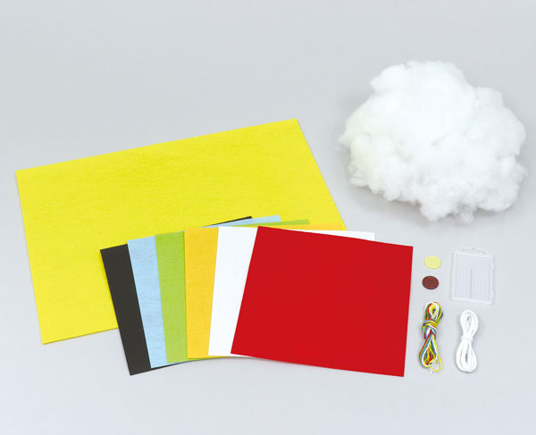 フェルト 黄(400×300mm)、フェルト6色組(赤、白、黒、黄緑、オレンジ、水)、