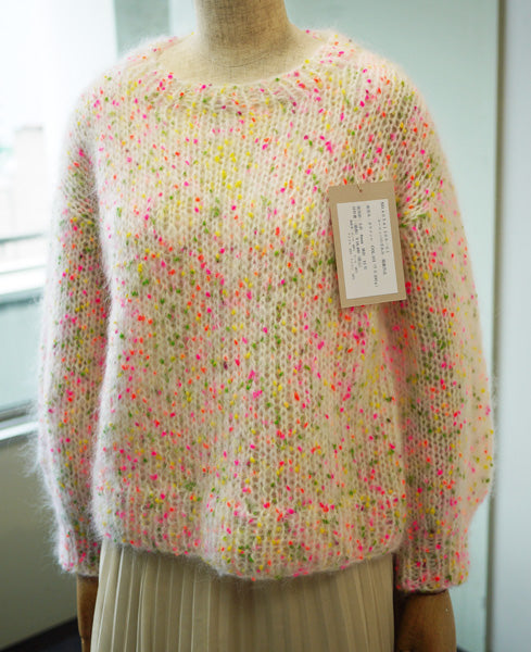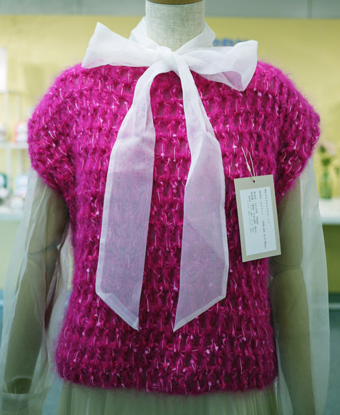 大きな撚りの変化から生まれる編地の凹凸感がチャーミングです。