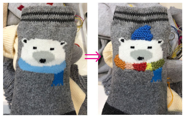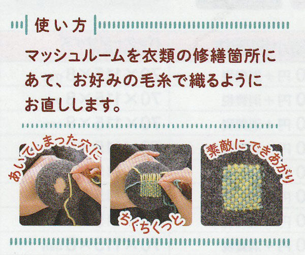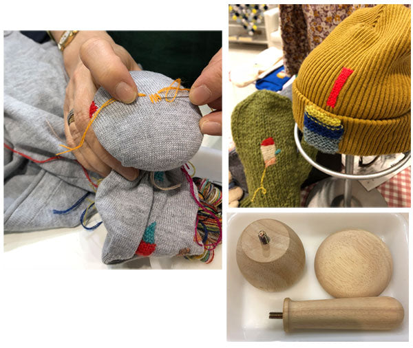 キノコ型の道具で、穴のあいた靴下や衣類を