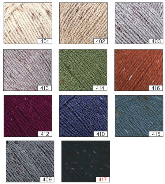●紡毛ネップ糸がナチュラルな表情を持つ、ソフトなカラー展開のツイード糸です。