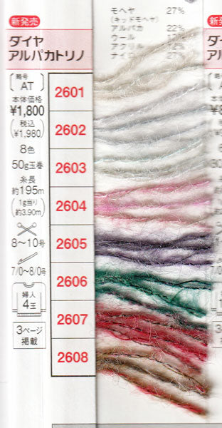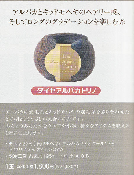 [素材] モヘヤ27%(キッドモヘヤ)、アルパカ22%、ウール12%、アクリル12%、ナイロン27%