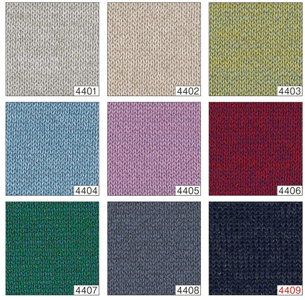 近似色の杢糸にカバーリングしたカラーラメは、とてもソフトな極細タイプで細やかな光が美しく、