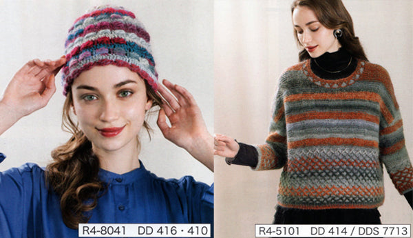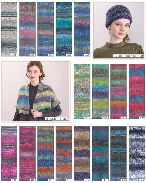 変わりピッチの段染めが楽しいキッドモヘア入りの毛糸です。
