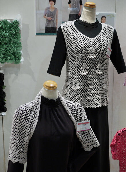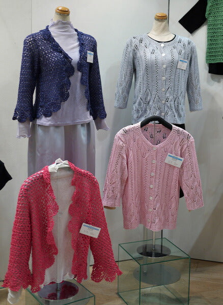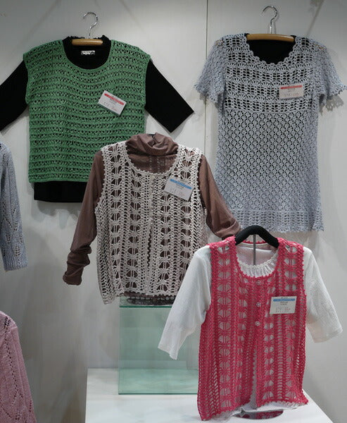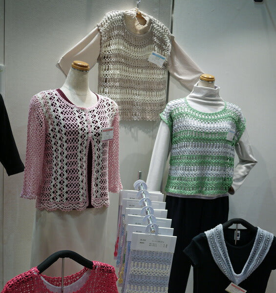 ・編み地は繊細でテープヤーンならではの涼しげな表情、肌触りもさわやかで夏の装いにもぴったりです