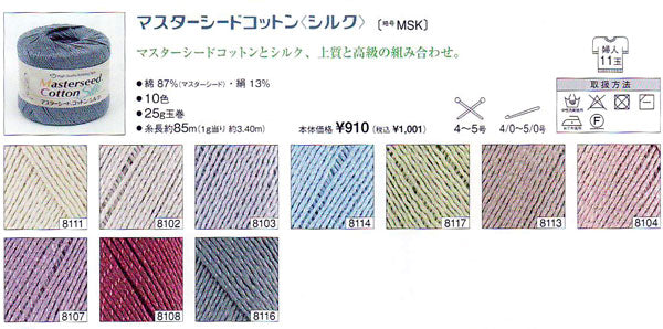 ダイヤ マスターシード コットン シルク ダイヤモンド毛糸 4H 【KY】 サマーヤーン 毛糸 編み物 並太