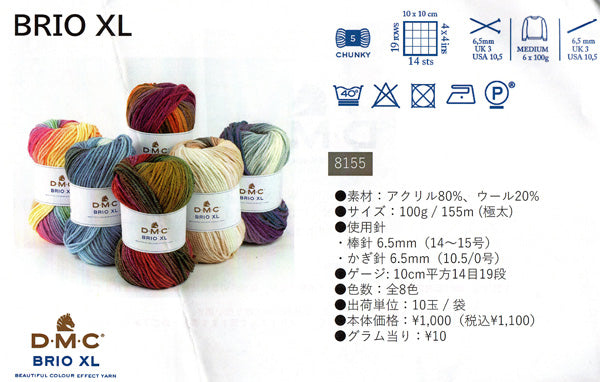 BRIO ブリオXL DMC 8155【KY】100g大巻 毛糸 編み物 極太