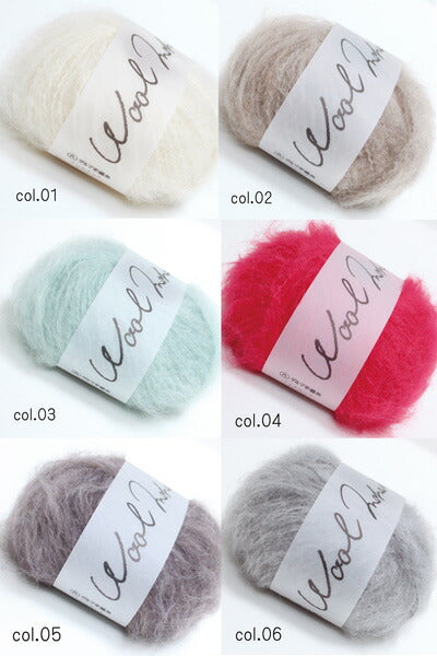 南アフリカのアンゴラ山羊から取れるモヘヤを贅沢に使用し、光沢感のある毛糸に仕上げています。