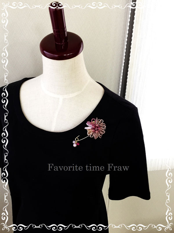 ビーズクロッシェ アクセサリーキット お花のブローチとバッグチャーム(ピンク) Fraw-318 堤まさみオリジナル 【KN】