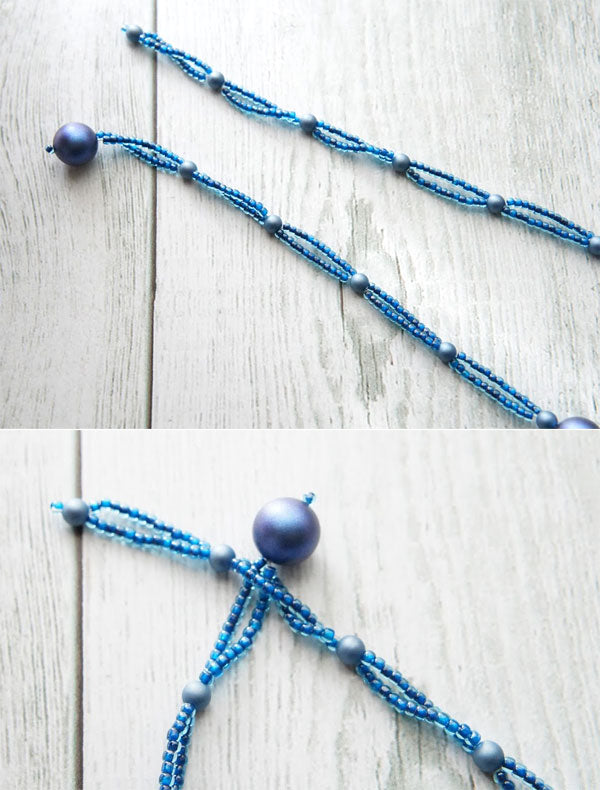 編み方のポイントはきつく編みすぎないことです。ダガービーズが下方向へ垂れ下がるようになります