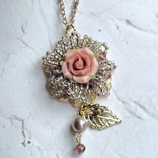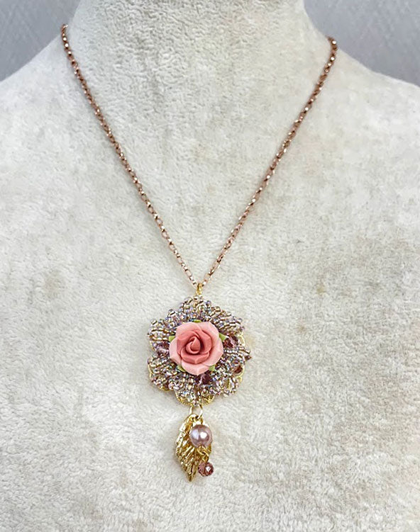 キット 編んで作る クロッシェペンダント ローズ Fraw-342 堤まさみ オリジナル 【KN】 ビーズクロッシェ