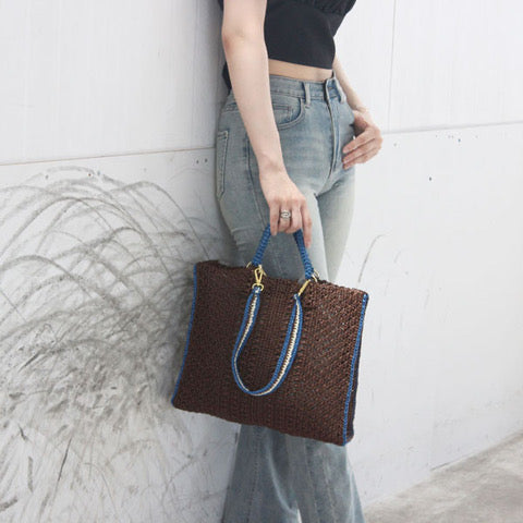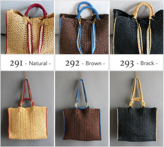 使用糸はdarumaの「クラフトクラブ」。軽いペーパーヤーンなので大きなバッグでも軽く仕上がります。