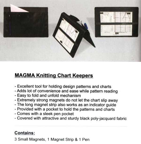 編み図をポケットに収容でき、またケース自体を折ると編み図を保護しながら立てて見ることが出来るので、便利です。