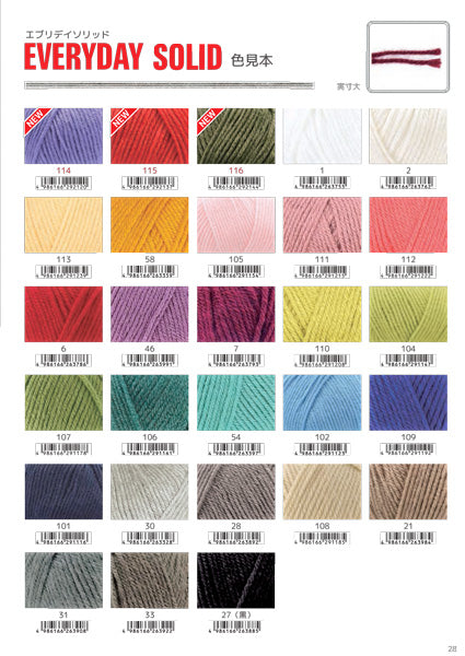エブリデイソリッド 色A ナスカ 内藤商事【KY】N-53 毛糸 編み物 100g アンチピリング 並太