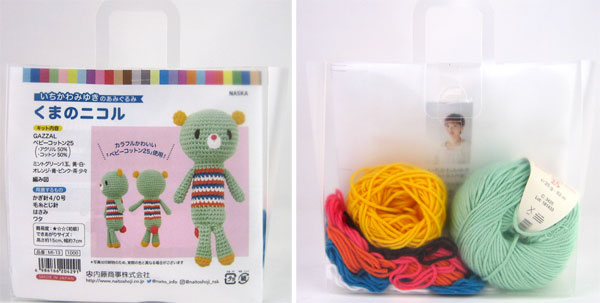 いちかわみゆきのあみぐるみ「くまのニコル」が編めるキットです。