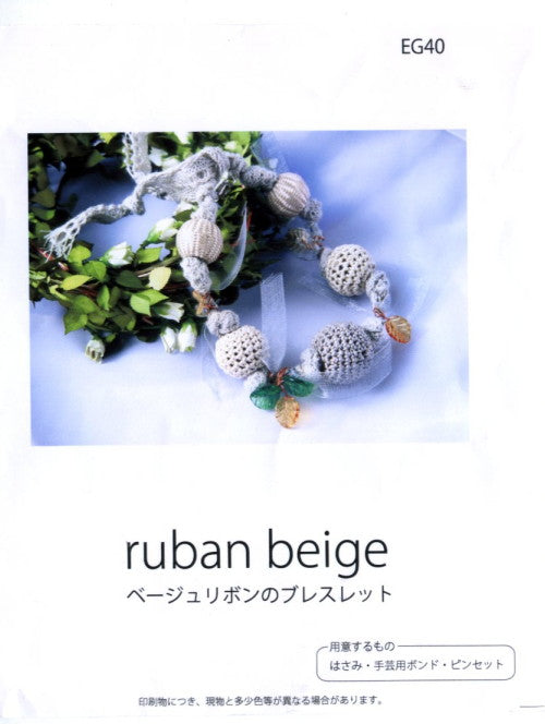 最終処分品!! ベージュリボンのブレスレット EG40 4I ショーンビーズのデコレーション 内藤商事 【KN】