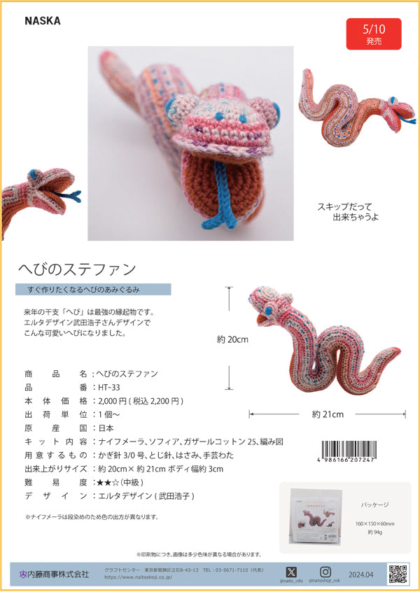 キット へびのステファン HT-33 内藤商事 【KN】 編みぐるみ あみぐるみ 毛糸 編み物 エルタデザイン