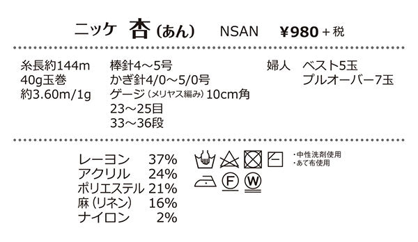 [素材] レーヨン37%・アクリル24%・ポリエステル21%・麻(リネン)16%・ナイロン2%