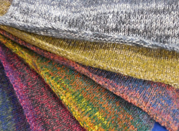 ウールアクリル起毛糸とメリノウールが軽量でボリューミィ。柔らかくウェアに最適。