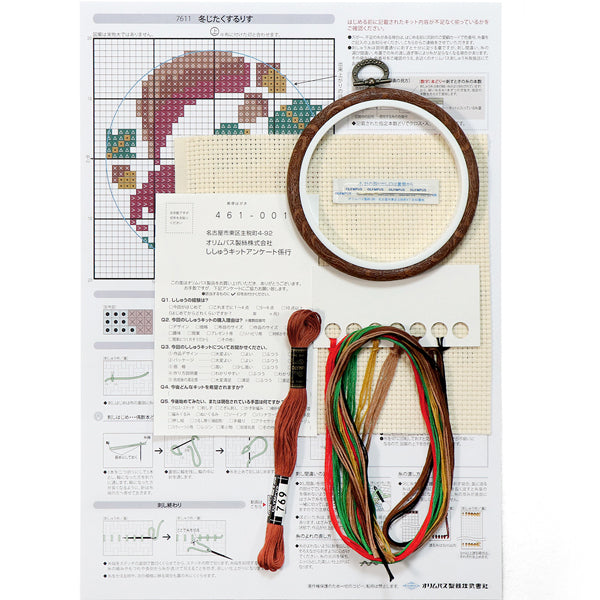 キット 冬じたくをするりす 7611 オリムパス 【KY】 刺しゅうキット クロスステッチ 専用フープ付