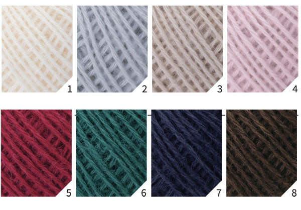 メリノウールを中心に、ファインアルパカ、キッドモヘヤをミックスし、女性らしいふんわり感をミックスした上質素材の糸です。