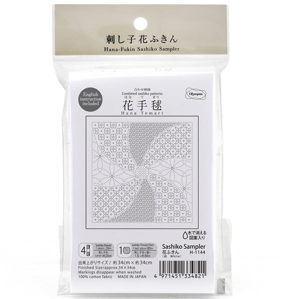 花ふきん 布パック 花手毬 Hana Temari H1144 (布地:白) オリムパス 【KY】 Olympus 刺し子 手芸 手づくり