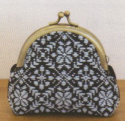 こぎんキット がま口ポーチ 丸型(黒) こぎん37 オリムパス【KY】 キット こぎん刺し