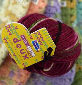 編むだけでグラフィックな柄になる特殊プリントをしています。