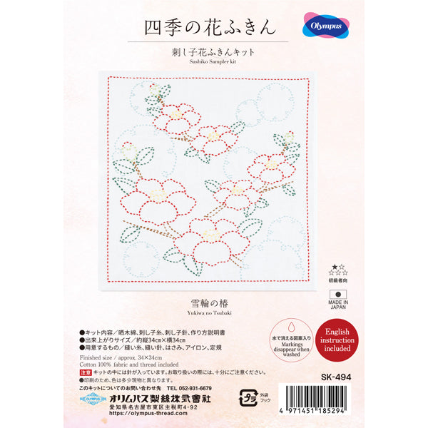 刺し子花ふきんキット 雪輪の椿 SK-494 オリムパス 【KY】Olympus 刺し子 キット 手芸