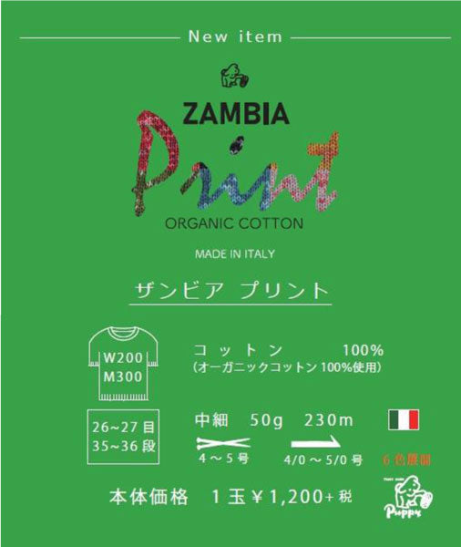 在庫限り ザンビアプリント パピー 【KN】2X サマーヤーン 春夏 毛糸 puppy 編み物 手編み糸 合太