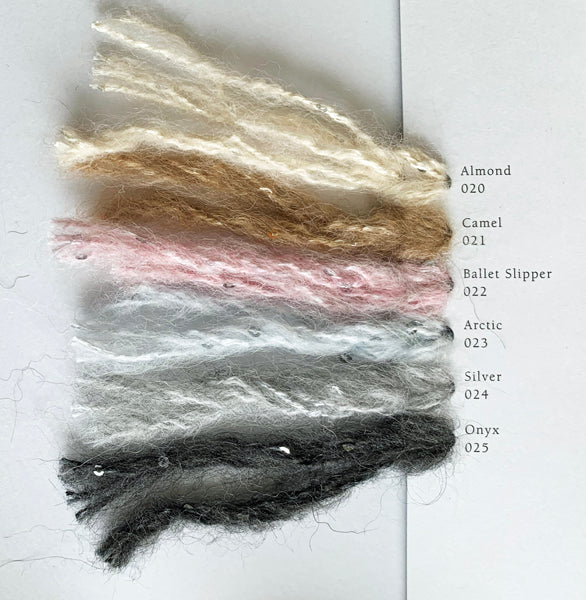 ROWANのアルパカ混モヘヤにキラリと光るスパンコールがちりばめられたファンシーヤーンです。