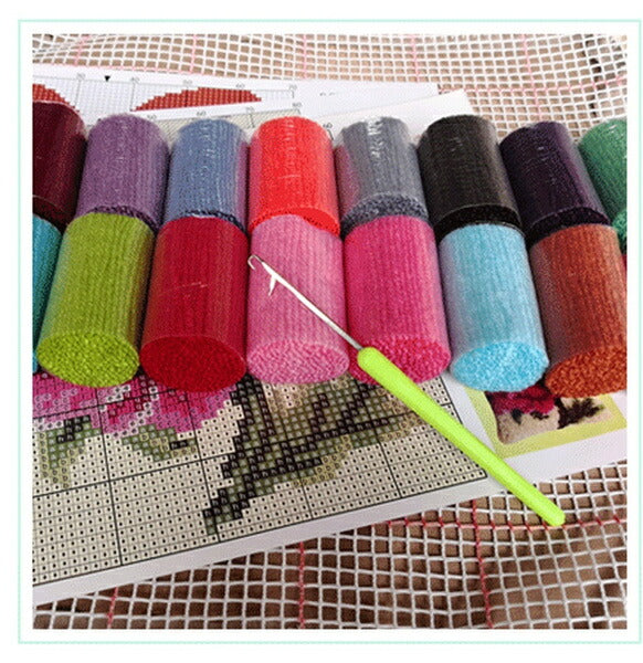 手づくり絨毯を作る針や糸、キャンバスなど