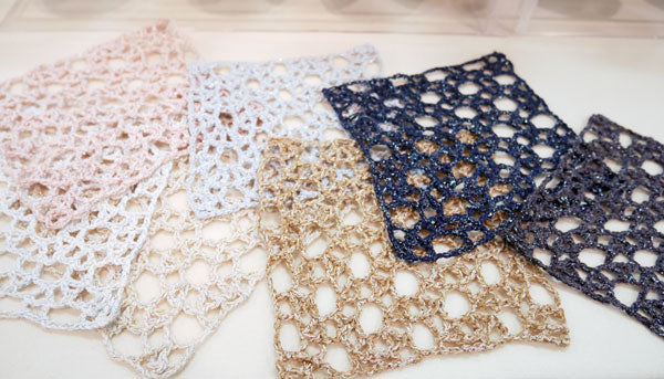 ◆点在する2色のラメノットと近似色の絣がエレガント&カジュアルな装いを演出する糸です。