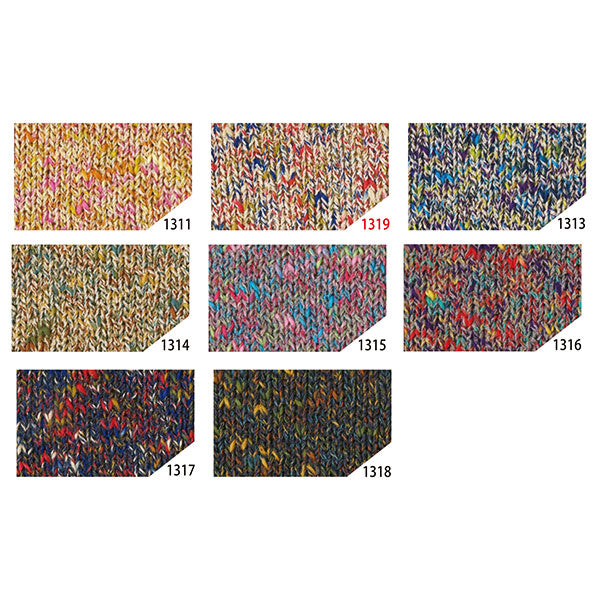 ナチュラルなシルク糸と、綿素材のカラフルなスラブヤーンを撚った意匠糸です