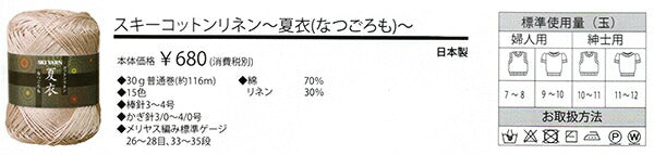 在庫限り スキー毛糸 コットンリネン 夏衣 なつごろも 【KN】 2K サマーヤーン ・ 毛糸 編み物