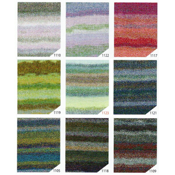 編み針や模様の違いで、色の見え方が変わり、それぞれに個性がある編地になるのでオリジナルの作品作りが楽しく、編物上級者の方にも満足していただける糸です。