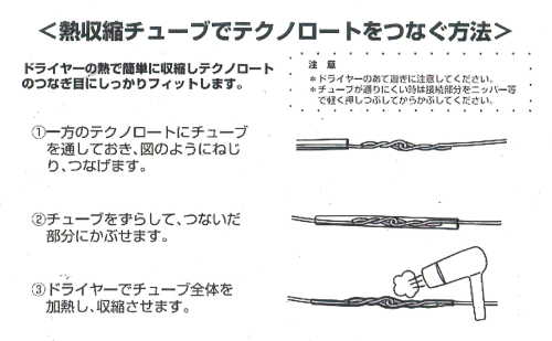 ドライヤーの熱で簡単に収縮しテクノロートのつなぎ目にしっかりフィットします。